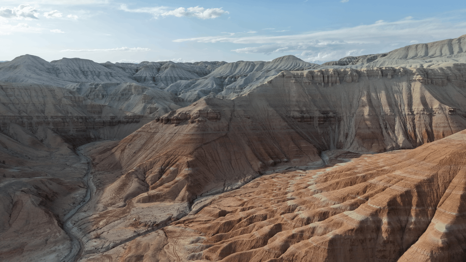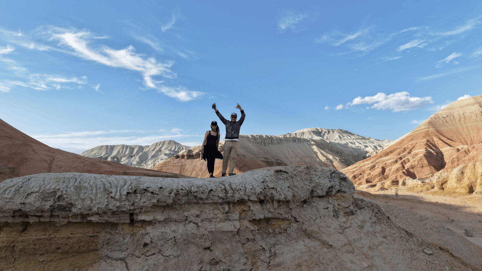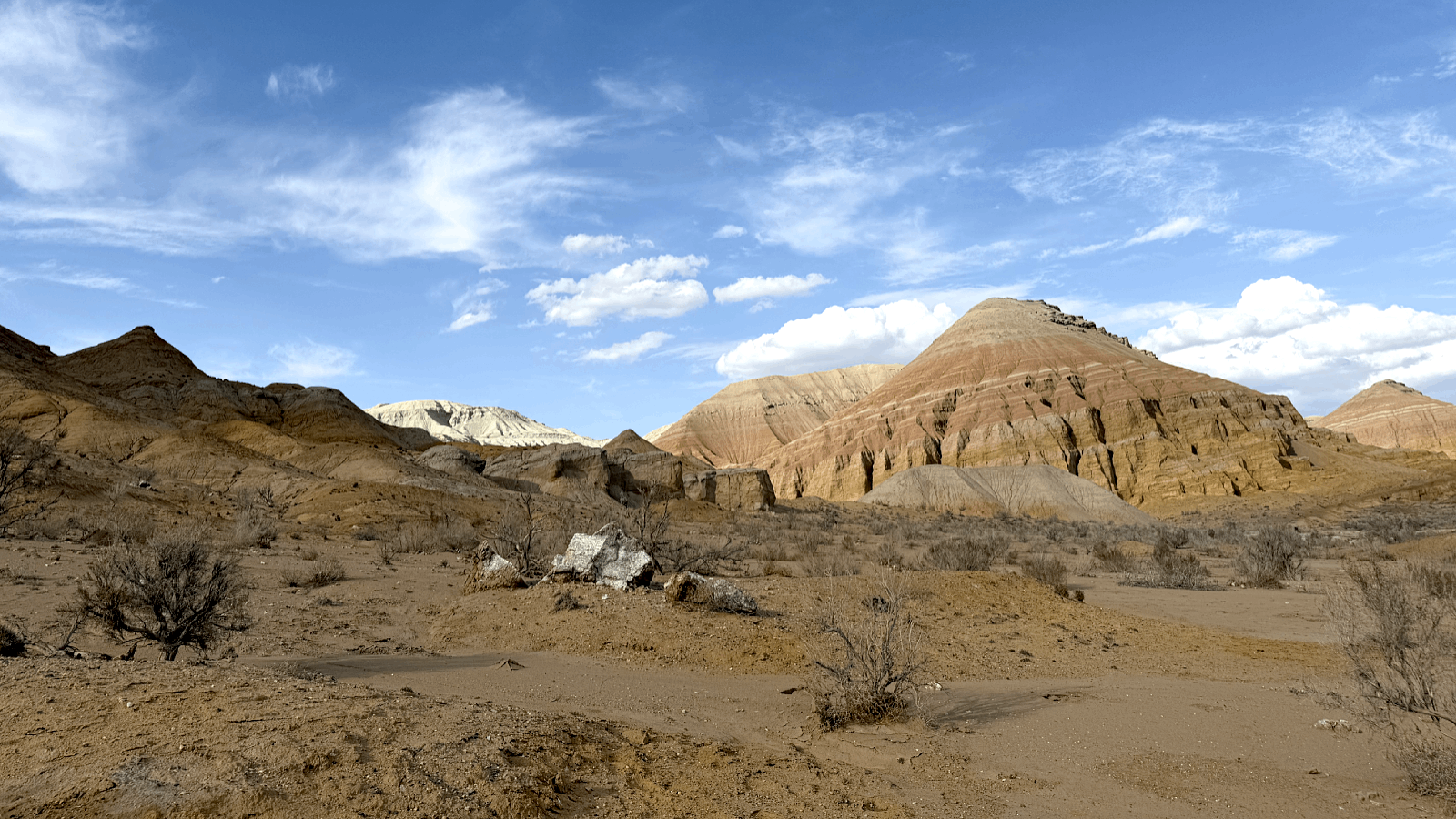 Aktau and Katutau Mountains: The Aktau Mountains are known as the "chalk mountains," a moon-like landscape with layered rock formations in hues of white, red, and yellow. Katutau, meaning “Harsh Mountains,” features lava-sculpted formations from prehistoric volcanic activity. Both ranges are perfect for photography and exploration.
