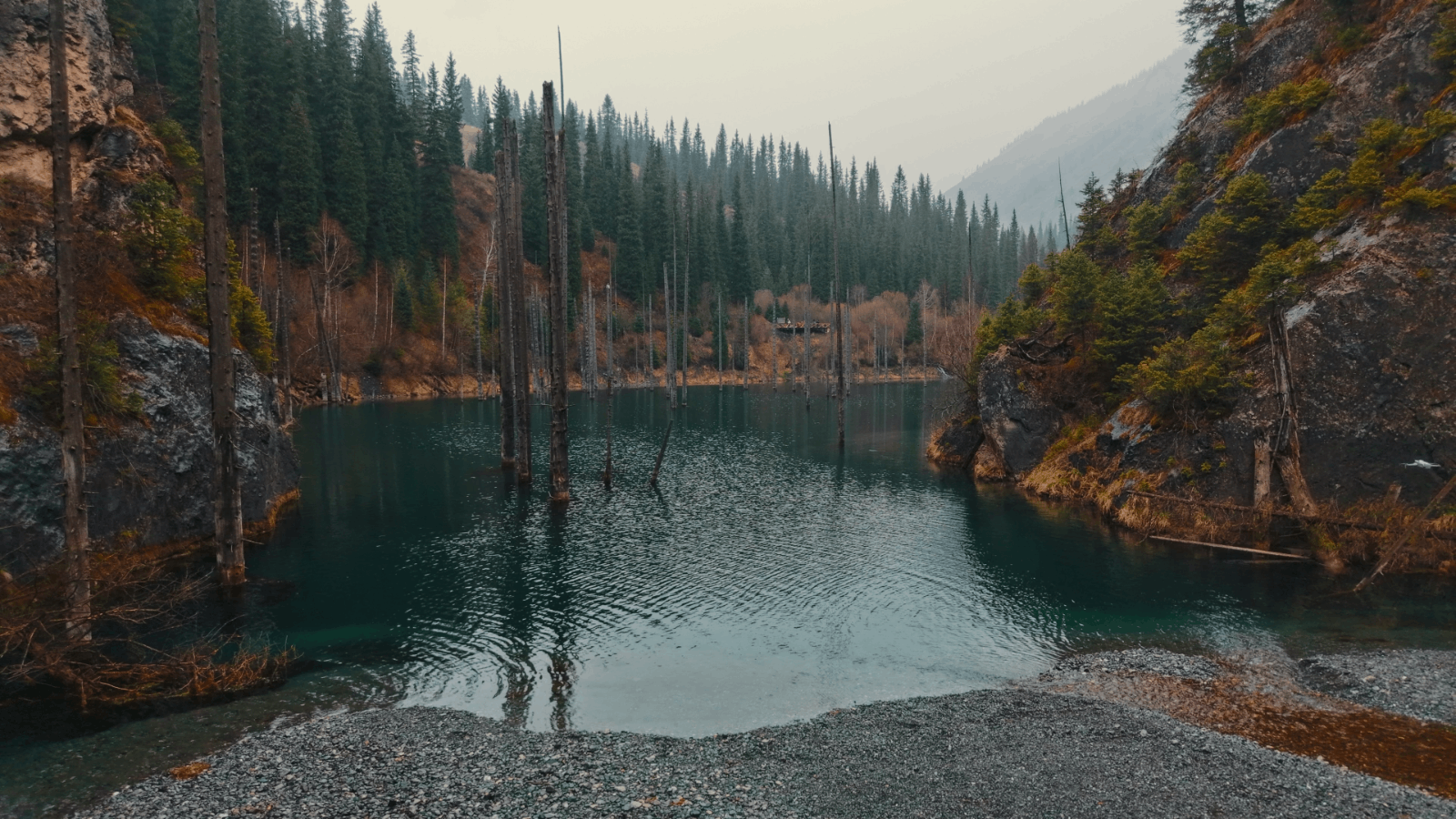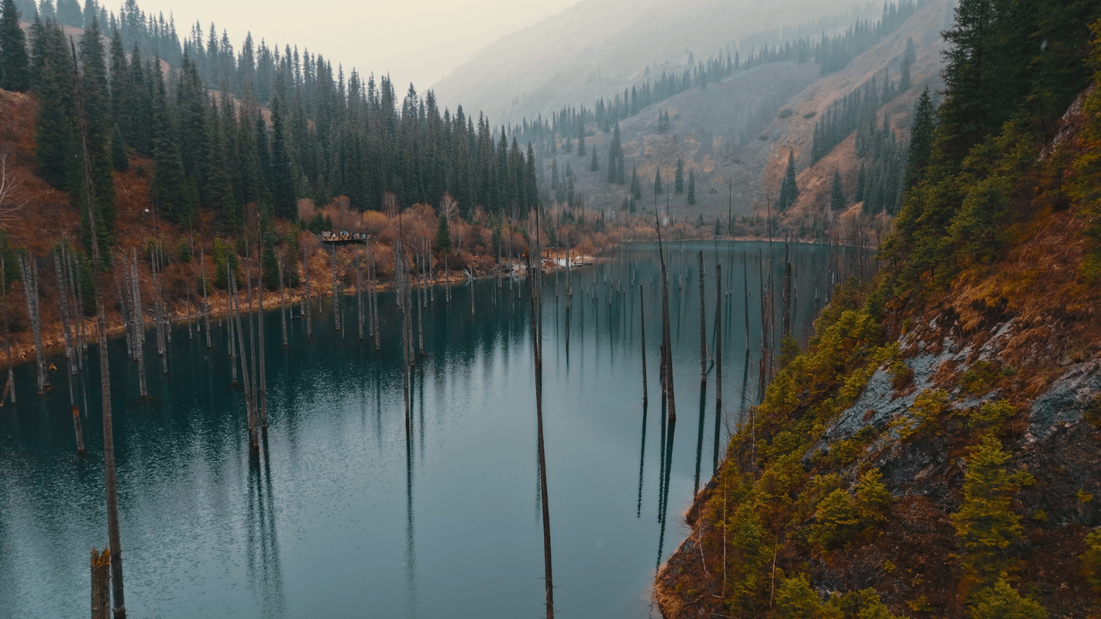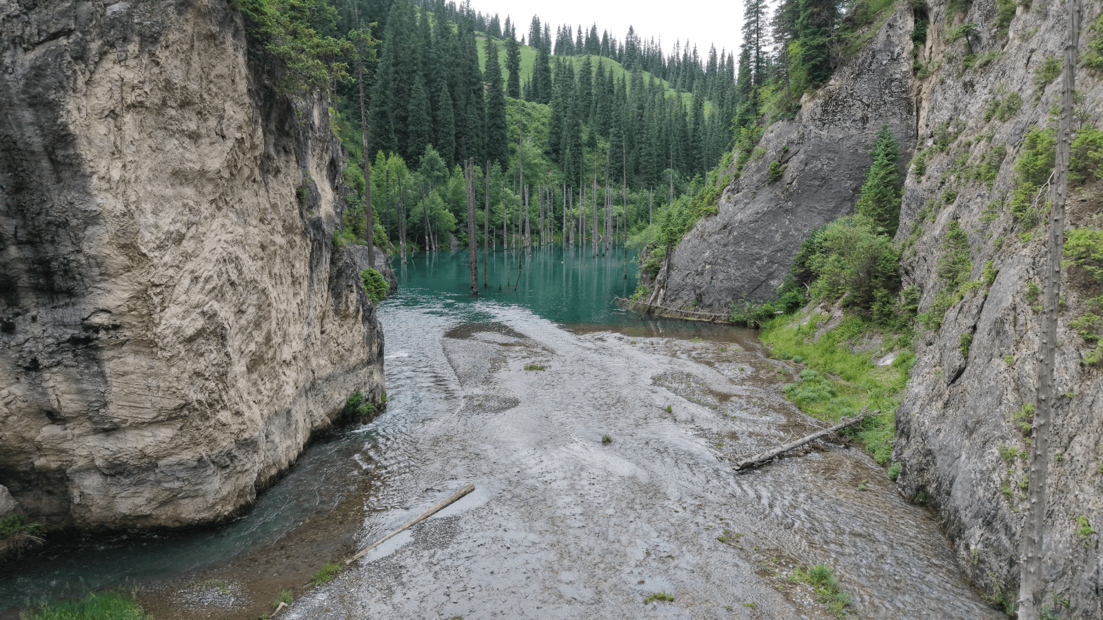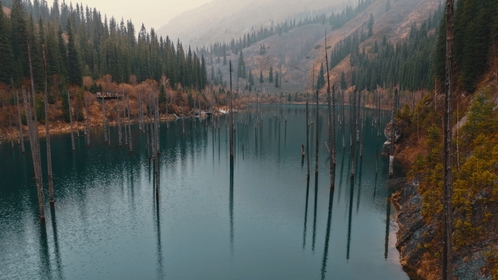 Kaindy Lake is unlike anything you’ve seen before. Formed in 1911 after a powerful earthquake triggered a landslide that flooded a spruce forest, this mystical lake is now famous for its partially submerged trees that eerily rise from turquoise waters like ghostly towers.